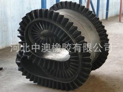 波形擋邊輸送帶選用先進的原材料,采取獨特的制造工藝,其擋邊、橫隔板、基帶經過二 次硫化法組合為一體。具有剛中有柔,柔中有強的不 脫膠、不掉塊的特點;又有耐撕裂、耐曲撓的新穎結構。同時具備一般擋邊輸送帶輸送角度大,傾角變換靈活,動力消耗低,工作效率高等優點 。 用途 :波形擋邊輸送帶被廣泛引用與港口、冶金、礦山、電力、煤炭、鑄造、建材、糧食、化肥等領域物料輸送。使各種散裝物料能以 0-90